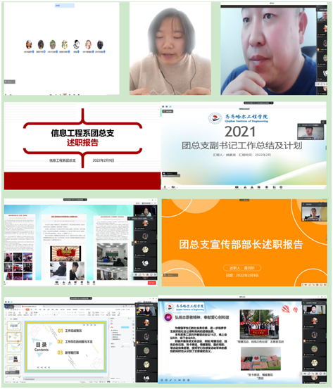 2月9日下午,信息工程系团总支于腾讯会议召开”2021年度工作述职“大会,本次会议由信息工程系团总支书记刘阳老师主持,学生工作副主任孙晓芳老师及五名团干部参加本次会议。