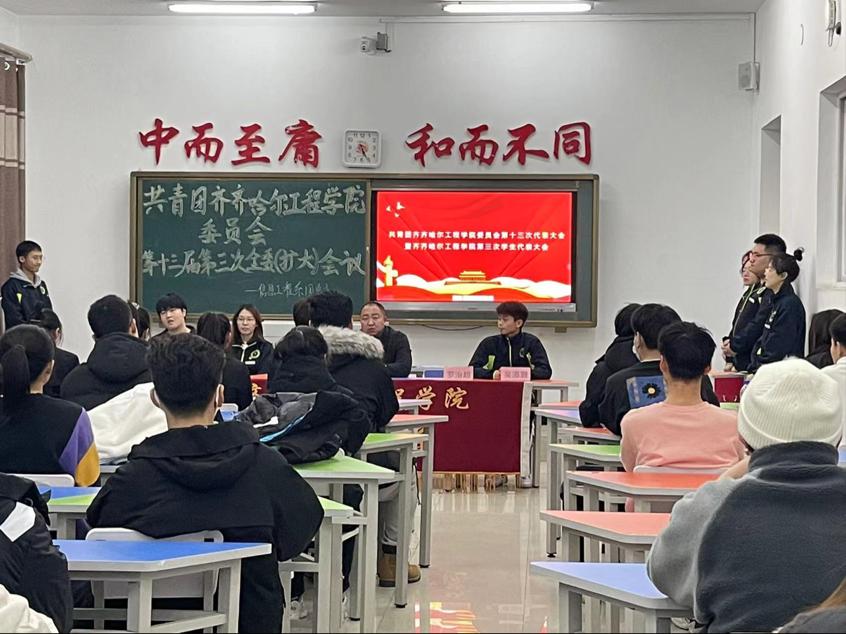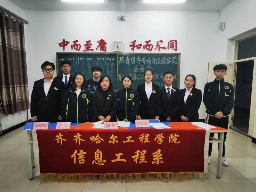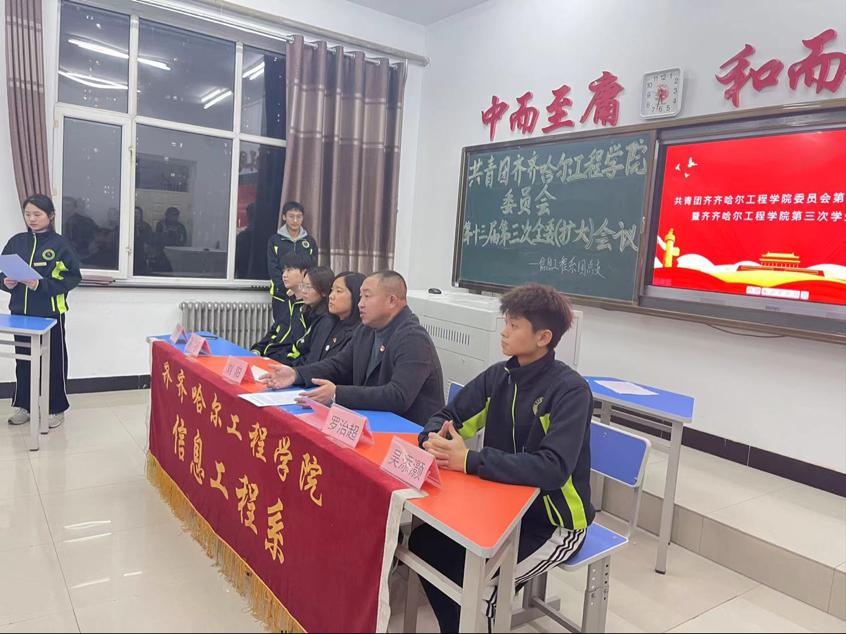 2021年12月24日下午,共青团齐齐哈尔工程学院委员会第十三次代表大会暨齐齐哈尔工程学院信息工程系第十三届第三次全委(扩大)会议在1教A区1405教室召开。信息工程系学生工作副主任孙晓芳、团总支书记刘阳和团总支全体干部出席会议,会议由团总支副书记罗治超主持,21级全体团干部参加会。