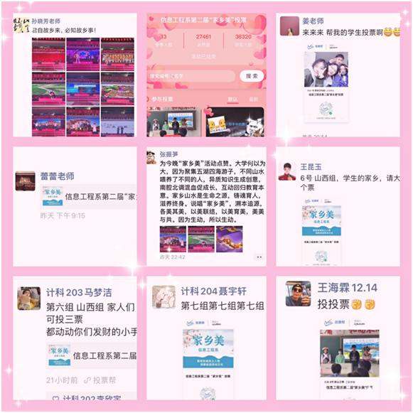 信息工程系“家乡美”主题活动作为一种承载、展示、传播家乡文化的活动形式,至今已是第二届。本届“家乡美”主题活动聚焦落实中国共产党的“两个一百年”奋斗目标及十九届六中全会精神,通过文化展示和才艺表演,多角度展现中国共产党带领广大人民不断探索、开拓进取的奋斗历程,更好地激发青年学生爱党爱国的朴素情感。“家乡美”的举办,也是一场生动的实景党课,在广大青年学生间传扬并加深对党的认识和了解,树立家国情怀,进一步坚定青年学子永远跟党走的理想和信念。