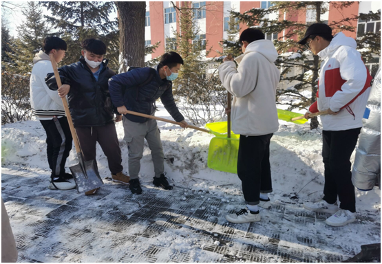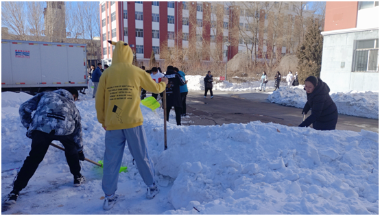 此次清雪中,同学们发扬了吃苦耐劳、顽强拼搏的精神,干劲十足。还保障了同学们的生活安全,让这个寒冷的天气显得暖意浓浓。