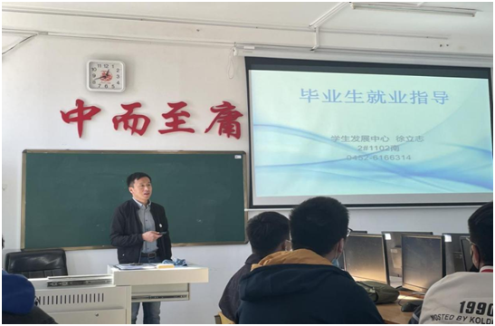 在就业形势方面,徐立志老师就毕业生就业形式类型的毕业去向结合实际及自身经验,应用实际例子,形象的讲解了毕业去向内容,在就业技巧方面,结合自己实际与多年的职业生涯规划教学经验,徐立志老师向大家强调选择一份适合自己工作的重要性。及签订就业协议书需要注意的许多细节之处,详细为同学们讲解了就业协议书的使用说明,还为我们提供了组织机构代码查询、找工作的网站,使同学们受益匪浅。