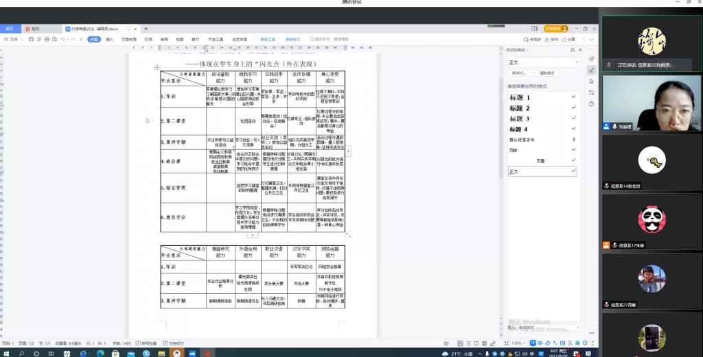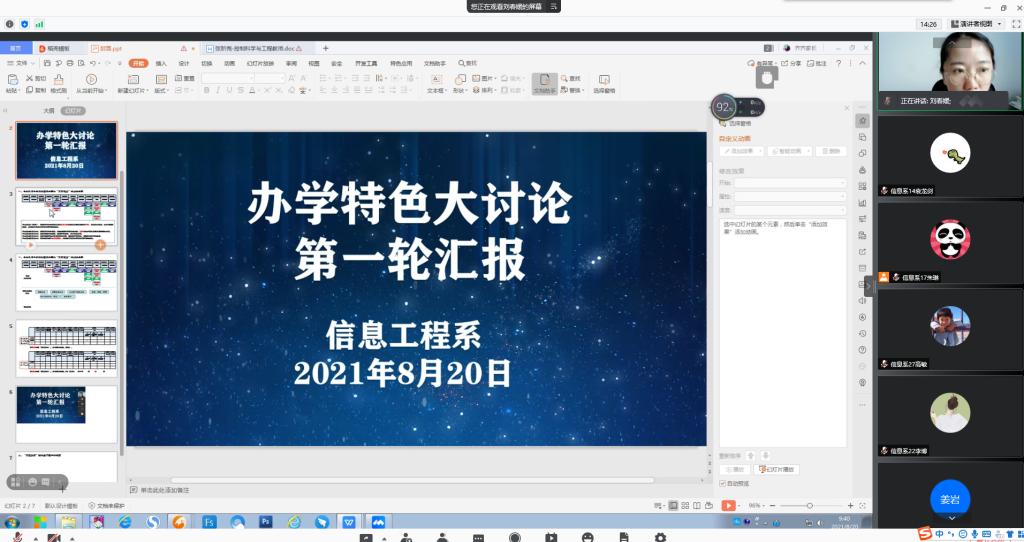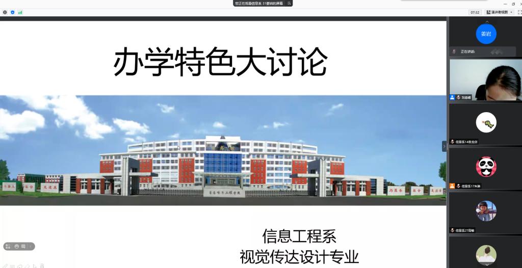 2021年8月20日,信息工程系全体教师,通过腾讯会议平台,召开办学特色打讨论第一轮汇报会。会议由系负责人刘春媛主持。