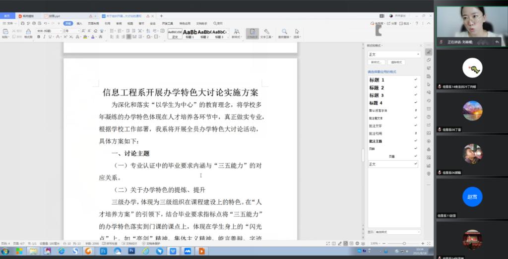 2021年8月18日上午10时30分,信息工程系组织系全体教工通过腾讯会议平台召开办学特色大讨论启动会,会议由系负责人刘春媛主持。