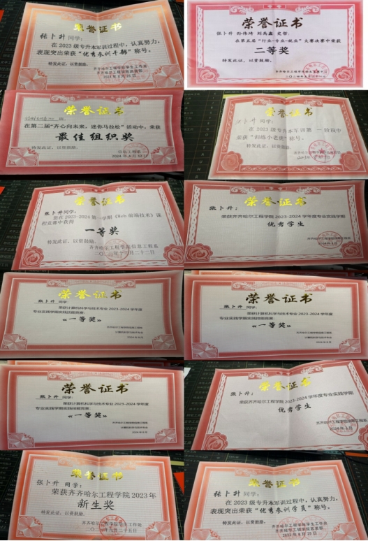 张卜升:在校期间,我始终积极学习,对待各门课程保持学习热情,上课认真听讲参与课堂,积极讨论,课前预习结合课后复习巩固,博览群书,了解最新的技术动态和研究成果,不断拓宽自己的知识面。将理论与实践相结合,主动参加各种编程比赛和专业实践,提升程序开发和解决问题能力,不断提升专业素养。