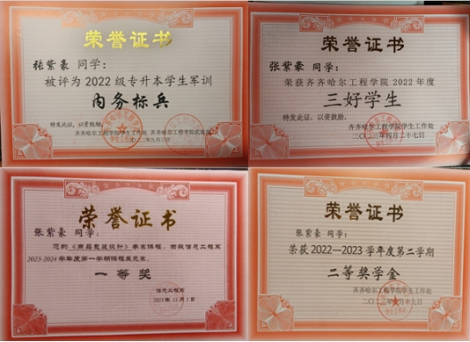 张紫豪:因为每个人的追求的都不一样,所以我只能从我个人角度出发给学弟学妹们建议,这个建议分为几点。第一点,一定认真上课,课上教学过程中老师采用的都是真实案例,学生能够直观地感受到客户的需求。第二点,积极参加专业相关的比赛和活动,专业竞赛锻炼大家的心理承受能力和专业技巧,文体活动则锻炼学生的积极性。第三点,一定要把握好专业实践学期的学习,这是在真实环境中真学真做掌握真本领的阶段,学生能够真实了解就业后的工作环境是什么样的。第四点,放松心态,不要眼高手低,要考虑就业整体情况。考虑以上几点,在就业的时候心态才不会失衡。
