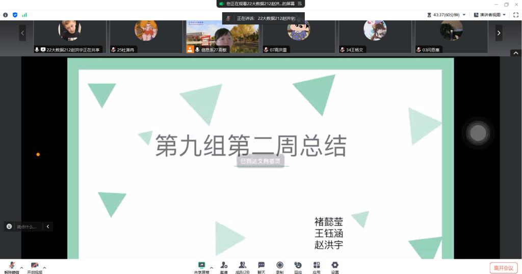 6月30日上午,大数据212在腾讯会议召开社会实践第二周周总结主题班会,此次会议由专业长高敏主持,大数据212班共有33人参加。