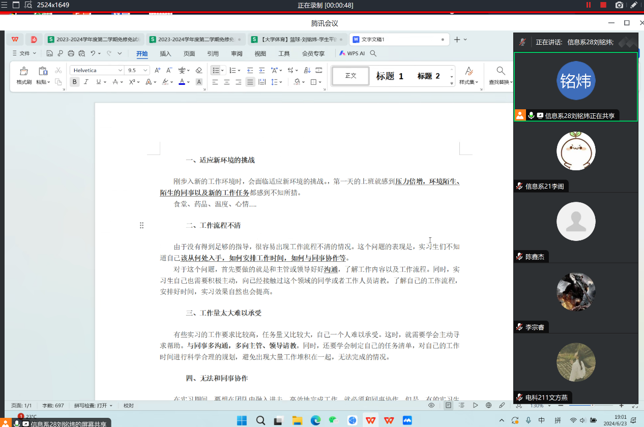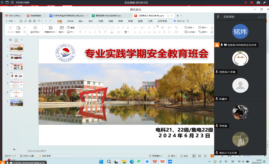 6月23日,李阁和刘铭炜老师为在丘钛电子股份有限公司和欣欣同泰科技有限公司等地实习的同学召开第一周总结会,会议通过腾讯会议进行,共计59人参加。