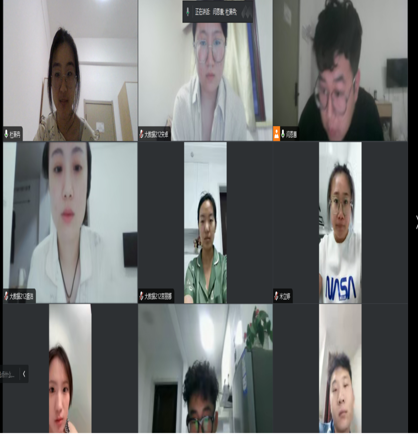 6月23日下午,大数据212班在腾讯会议召开专业实践学期第一周线上总结会,此次会议由班长闫恩惠主持,大数据212班全体同学参加。