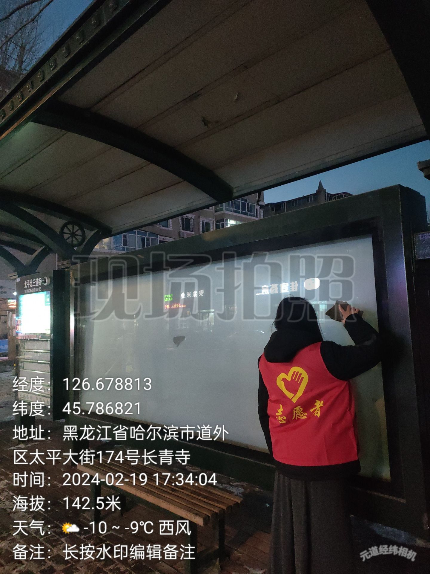 2024年2月19日下午,康佳彤同学在黑龙江省哈尔滨道外区进行温情暖街区的清结卫生志愿活动。清洁公交站牌的环境,保障乘客更好的等车环境是保障乘客健康生活的重要基础,其清洁直接关系到乘客的健康生活。 通过此次公交车站清洁卫生志愿活动保持了环境卫生,街区环境焕然一新,公交站乘客纷纷表示满意。此次清结卫生活动的开展让乘客更加注重公共卫生,养成良好的生活习惯,养成健康的生活方式。
