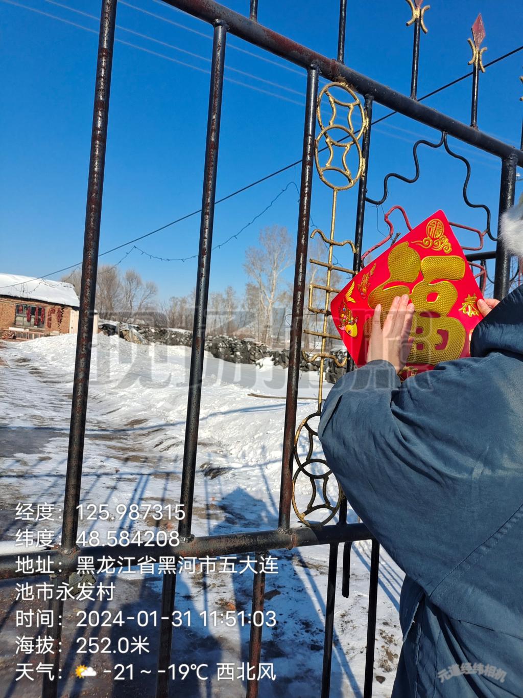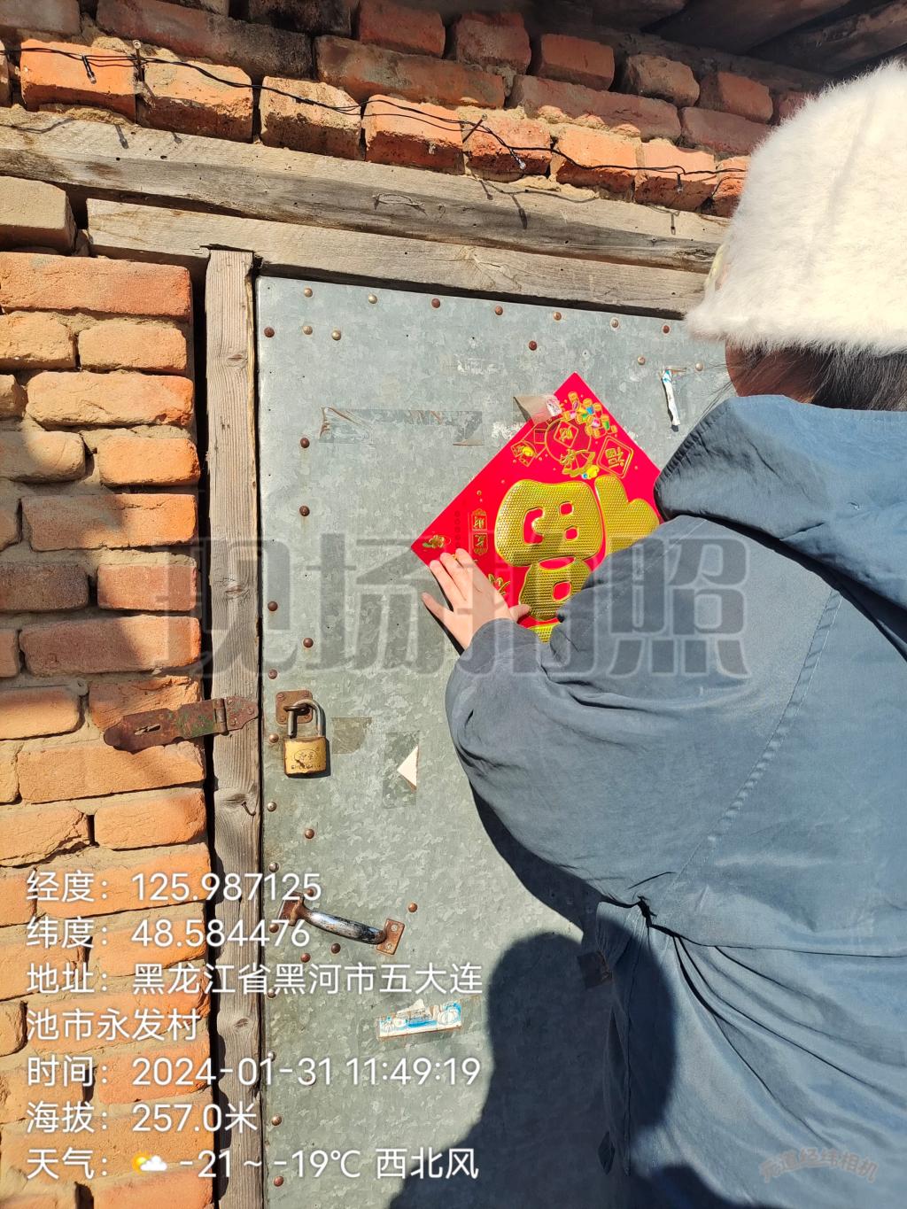 1月31日中午,大数据212班宫丽娜同学通过联系村委会,开展为独居老人贴对联的志愿服务。
