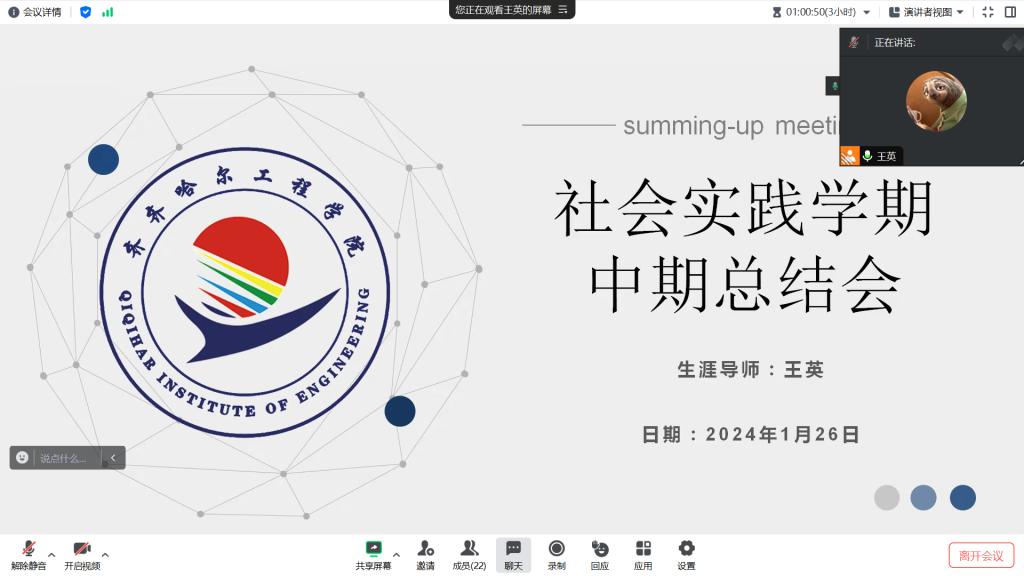 1月26日下午,王英老师召集全体同学对社会实践活动进行了阶段性总结。在此次会议上,同学们就钢锴临摹、读书分享以及钉钉运动等方面进行了详细的汇报,展现了他们在社会实践活动中的努力与成果。
