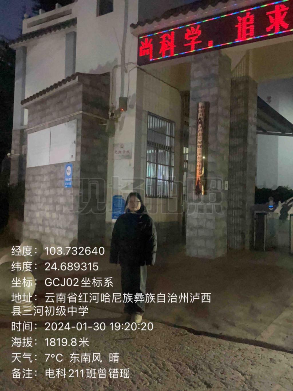 在社会实践学期1月30日晚,我来到曾经的母校与母校进行合影,并且向曾经的老师进行了线上回访。