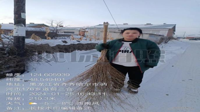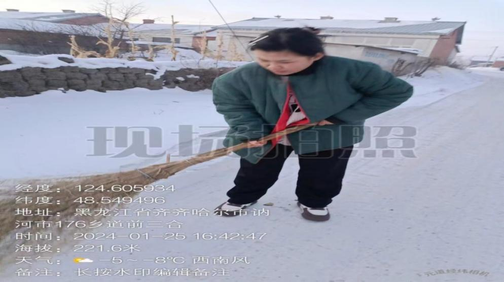 在1月29号下午16:49分进行扫雪志愿服务,视觉211白静在二克浅镇远大村开展了第一次志愿服务。