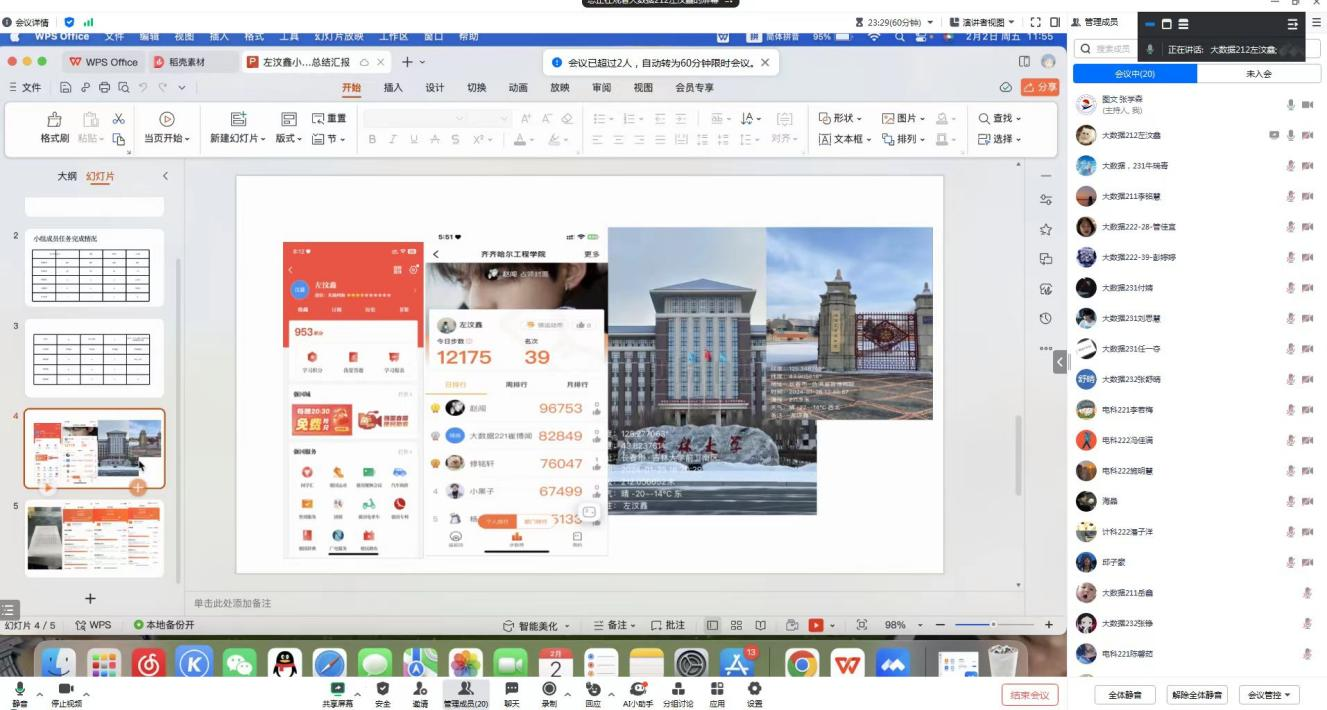 各小组负责人对本周的社会实践活动的进展情况进行分享,大部分同学完成了钢楷临摹、学习强国等任务。在发言环节,同学们提出了自己在实践活动中遇到的问题和困难,很多小组都反映了钉钉步数不准的问题。张老师耐心解答大家的问题,建议同学们打开钉钉的运动数据同步,并检查是否有些应用权限没有打开。张老师还强调了要抓紧时间做公益活动。可以从环保绿化、志愿者两方面展开活动。他还强调在社会实践学期的活动安全等问题。