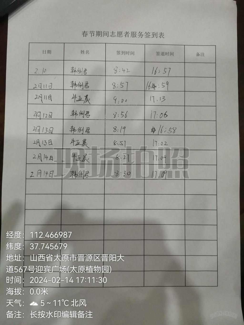 2月10日至2月14日,SHSJ38小组韩俐君同学在山西省太原市晋源区晋阳大道567号迎宾广场太原植物园开展了社会实践学期的两次志愿活动。