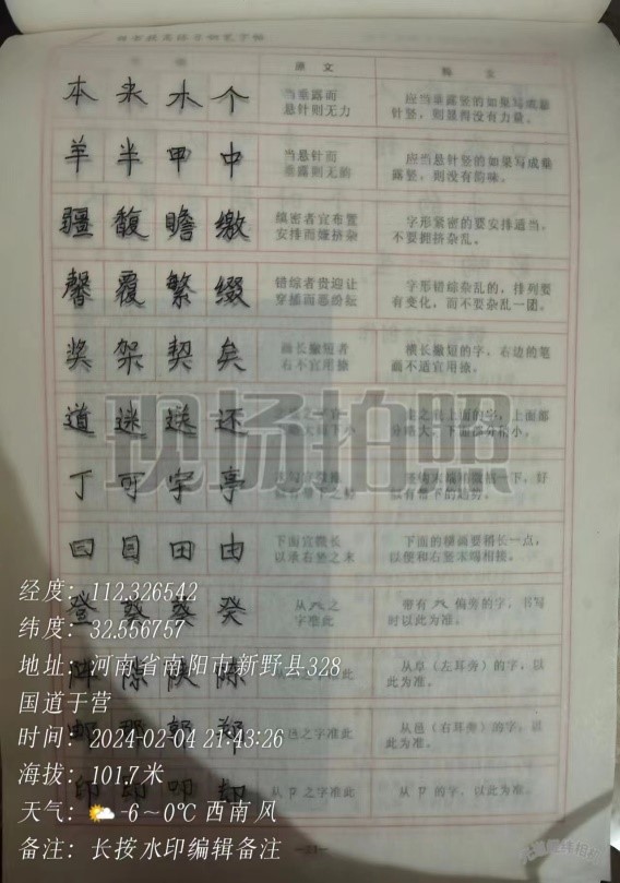 1月29日——2月4日,梁雨婷进行每日字帖临摹。