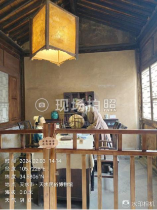 小组成员王帆去参观了天水民俗博物馆,馆内收藏了2366件各类文物,其中包括民俗文物,这些文物构成了多个主题陈列,如“家族谱系、祝寿、婚庆陈列”,“祭祖、闺房及家居生活陈列”,“书房、佛堂、私塾陈列”,“皮影专题陈列”,“书画、剪纸陈列”,“刺绣、银饰陈列”,以及“书画、剪纸陈列”等。