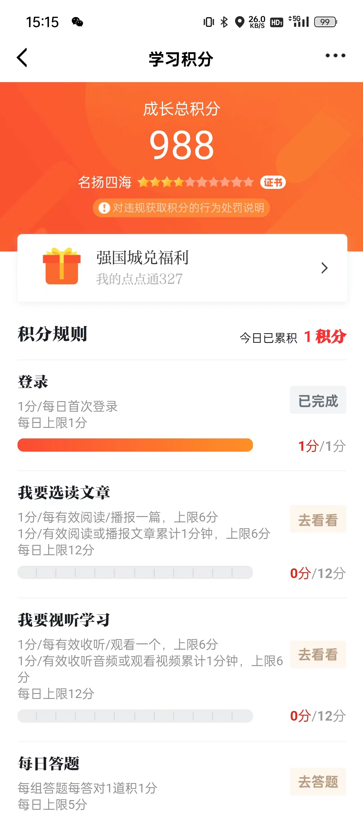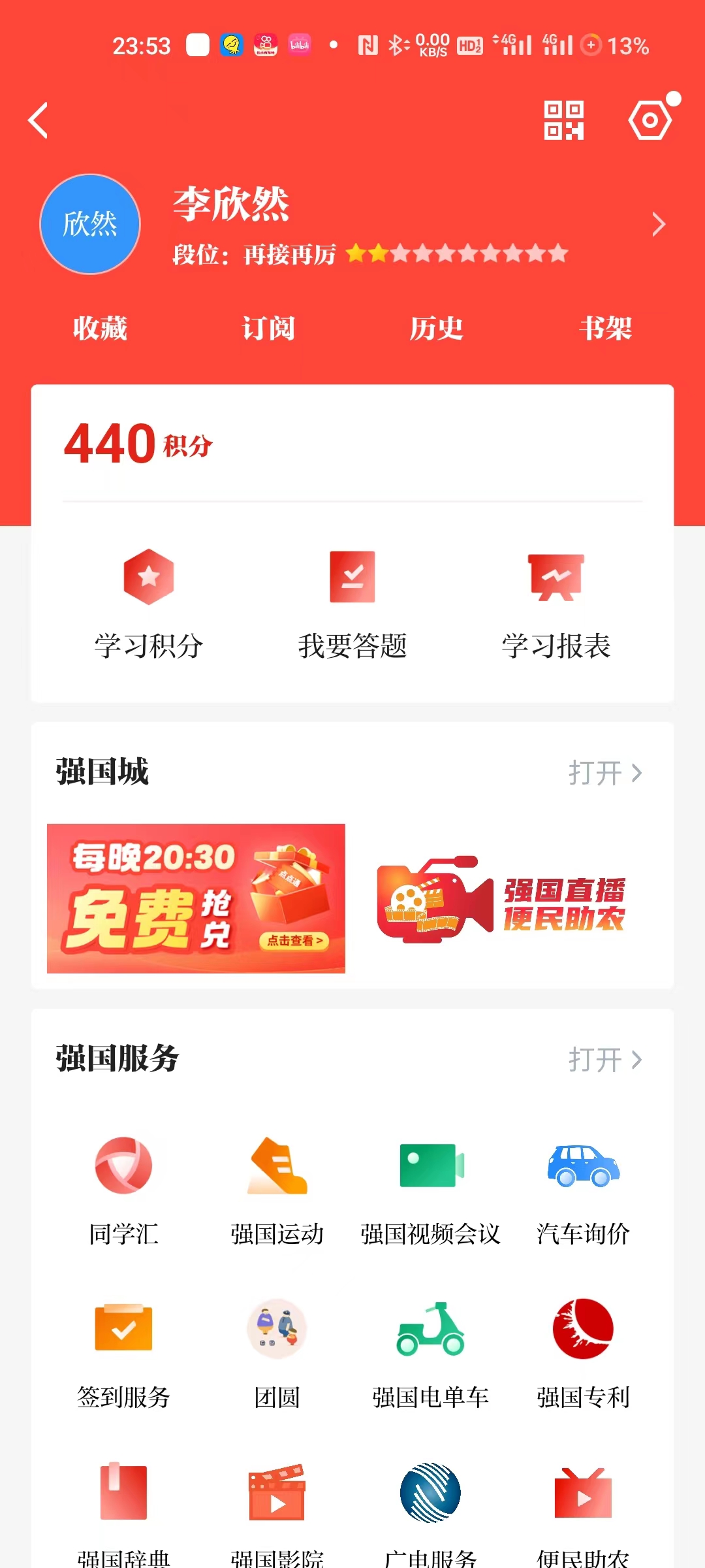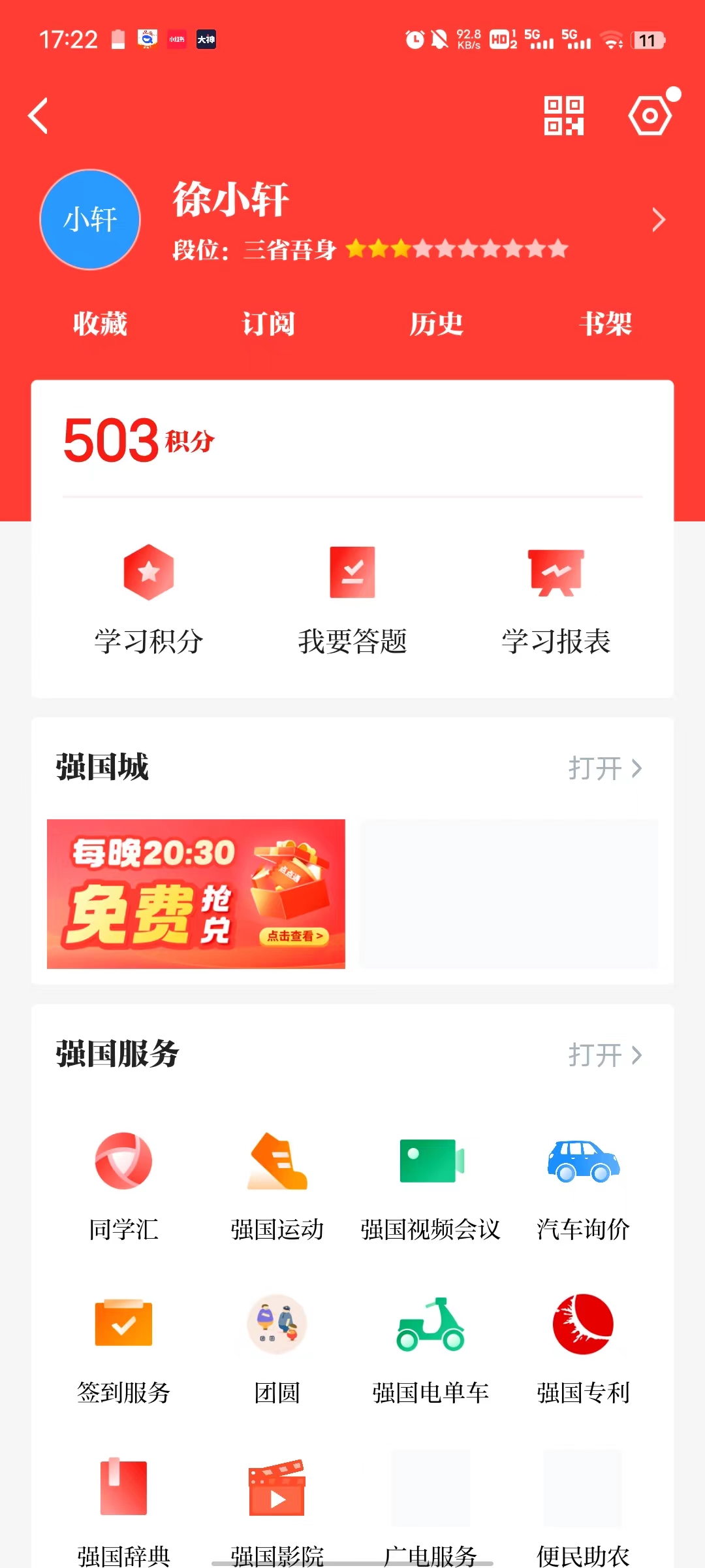 首先,小组成员利用闲暇时间登录学习强国,按照“阅读文章、试听学习、每日答题、专项答题、挑战答题、订阅、收藏、发表观点”等规定动作认真学习;其次,小组成员在不断学习充实自己中,深深被这个好的学习渠道吸引,喜欢这个平台的多元化的信息内容,不仅有党史、新闻、评论等文字内容,还有大量的图片、视频,内容丰富,学习也颇有兴趣;最后,坚持一段时间后,小组成员积累了大量的历史、文学、党建、时政知识,也经常和家人以及组内成员分享自己学习的经验。