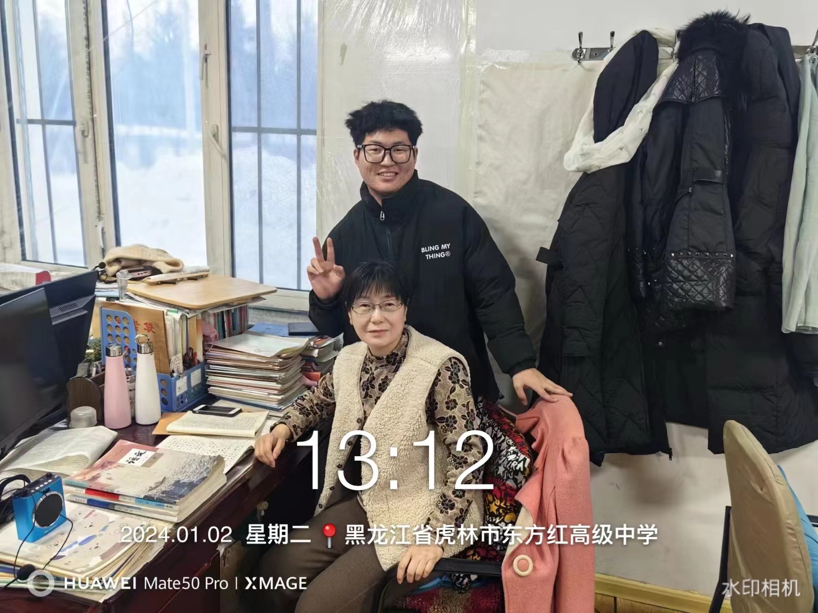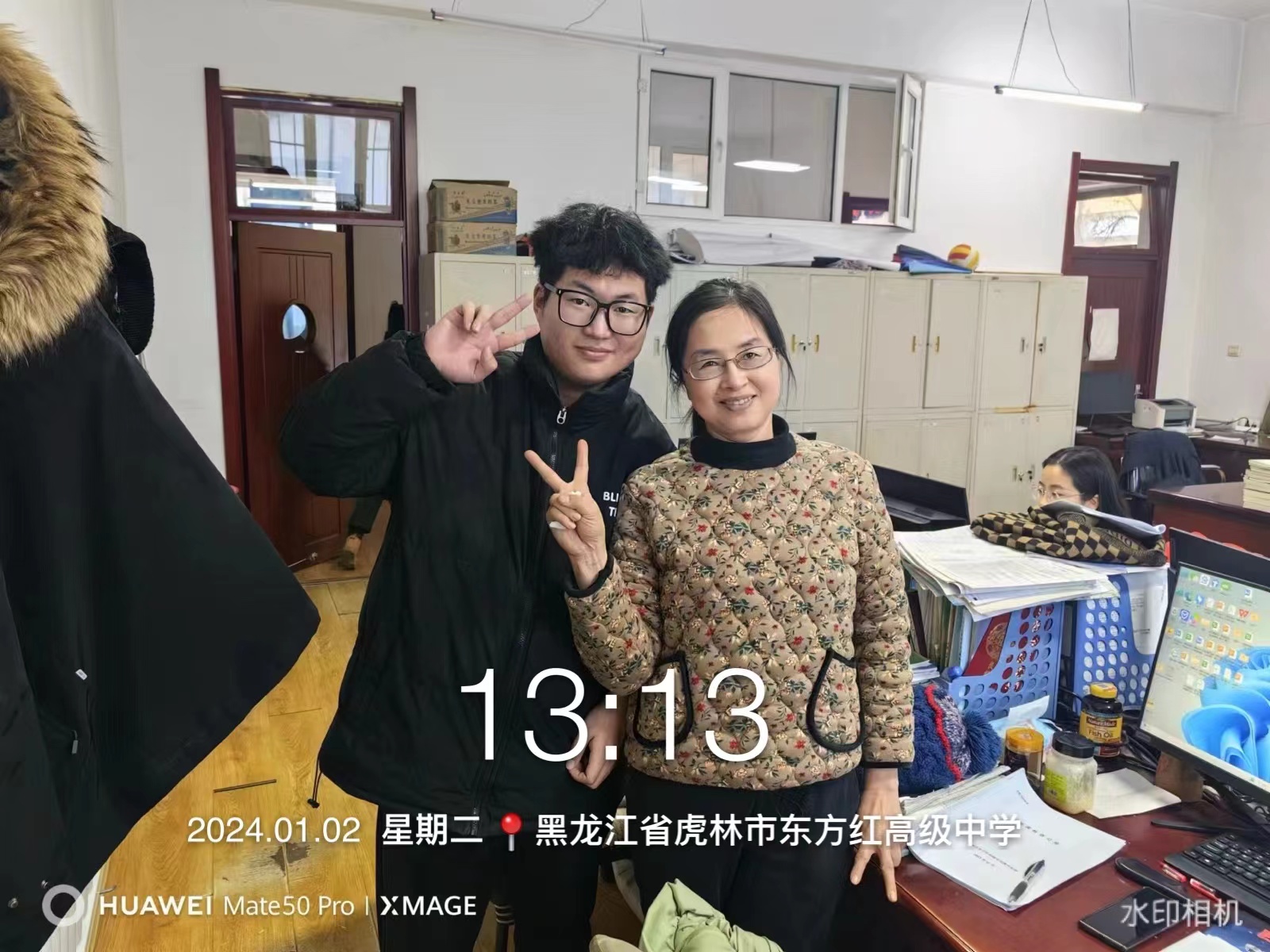 首先,张羽泉来到自己高中的学校门口,并拍下了自己曾经学习的地方。其次,他与学弟学妹们制作的雪雕也进行了合影。看着同学们如此多才,他鼓励学弟学妹们志存高远,树立远大目标,同时培养自己善良、勇敢、诚实、真诚、正直的美好品格,成为可塑造之才。 最后,张羽泉与老师们分别在东方红初高级中学办公室拍了合照,记录这次回访母校。
