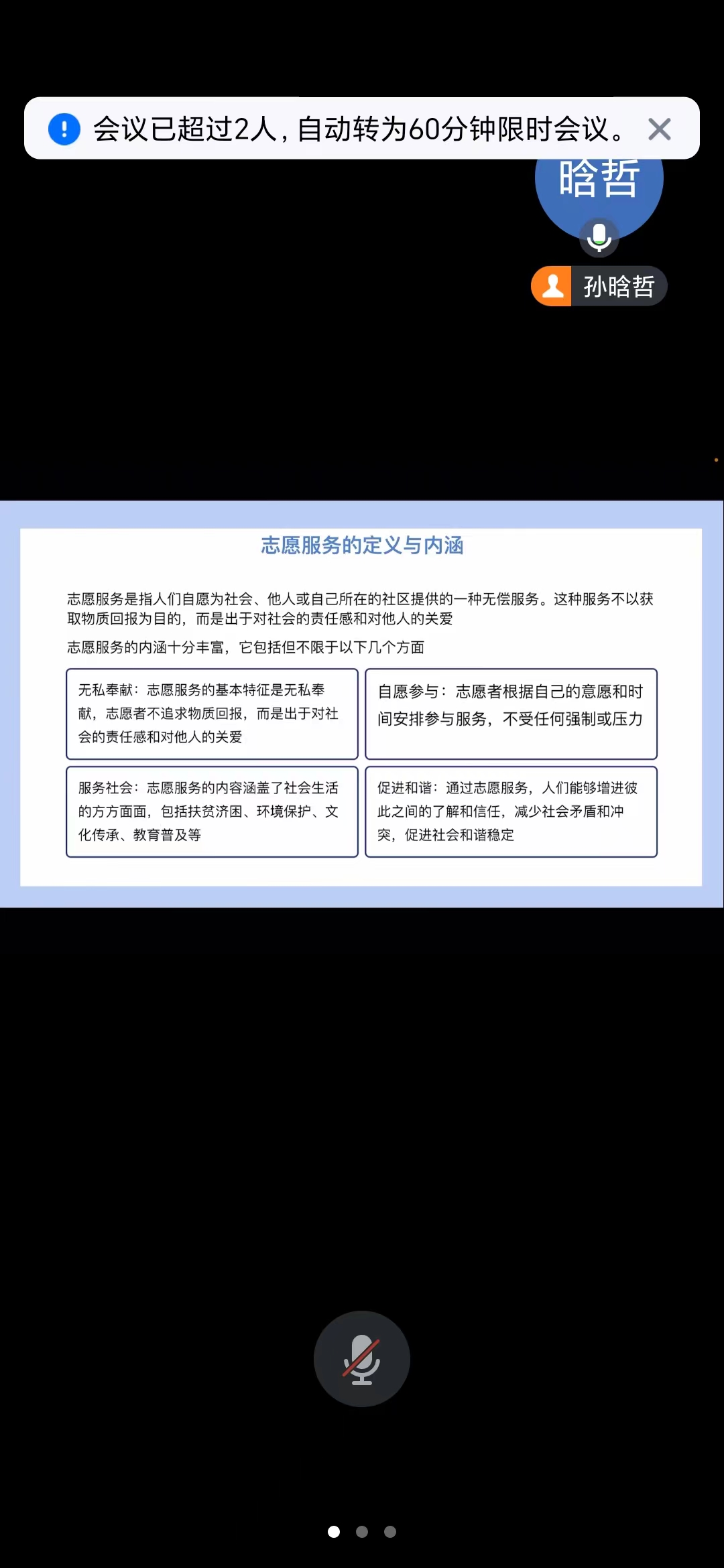 1月30日上午,SHSJ72小组在线上召开志愿服务交流会,此次会议由组长孙晗哲主持,小组成员5人对志愿服务进行了探讨。