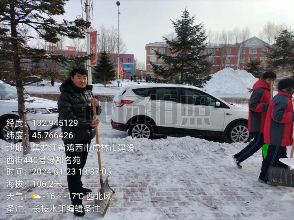 而最令人瞩目的莫过于孟凡海同学与同窗好友一同投身扫雪的场面。在这个举国欢腾的时刻,他展现出了高尚的品质和积极向上的精神风貌。他与同学们携手清理校园的积雪,不仅展现了个人的责任心,更为整个校园增添了一份温馨和团结的氛围。