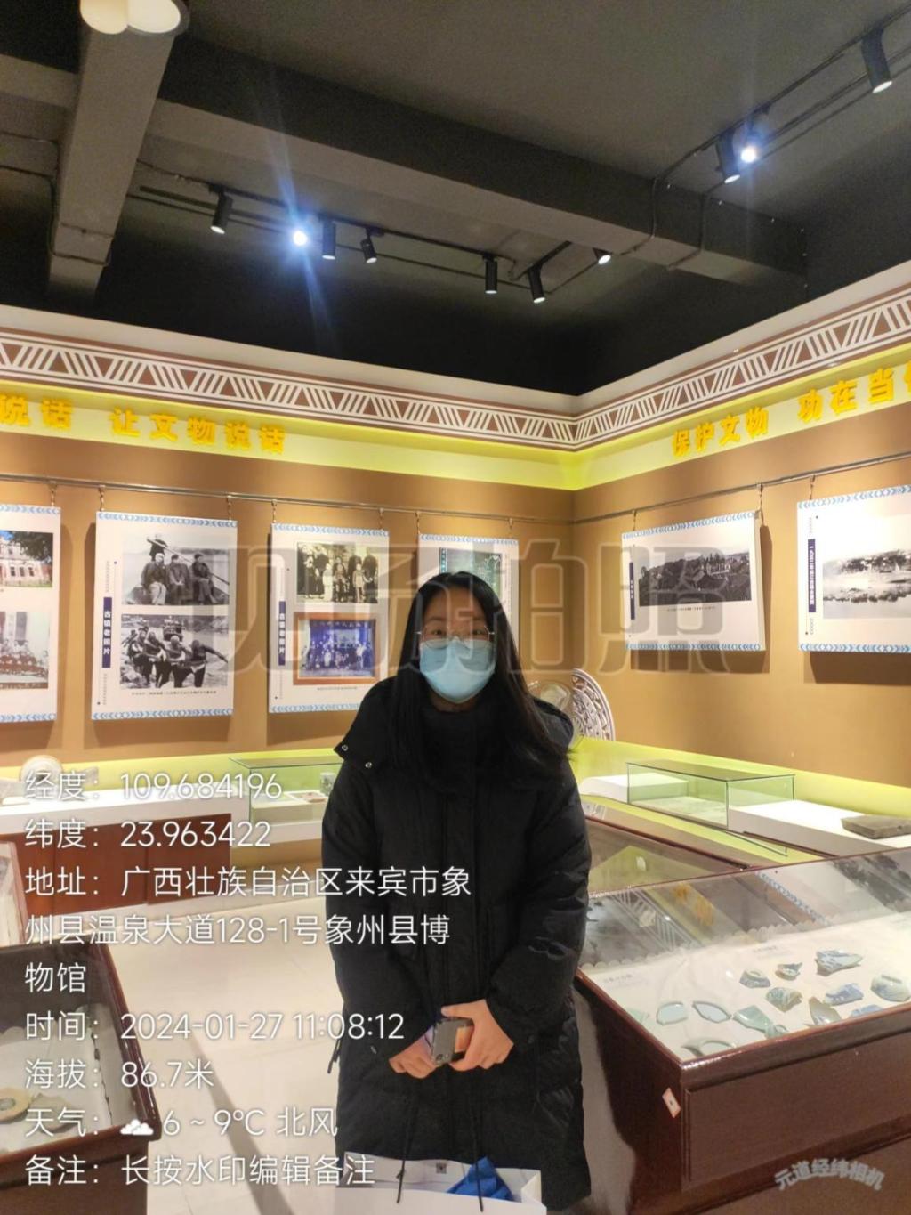 1月27日上午,韦菲参观了象州县博物馆,博物馆位于广西壮族自治区来宾市象州县温泉大道128号,是创建于1984年6月的一所地方综合性博物馆。