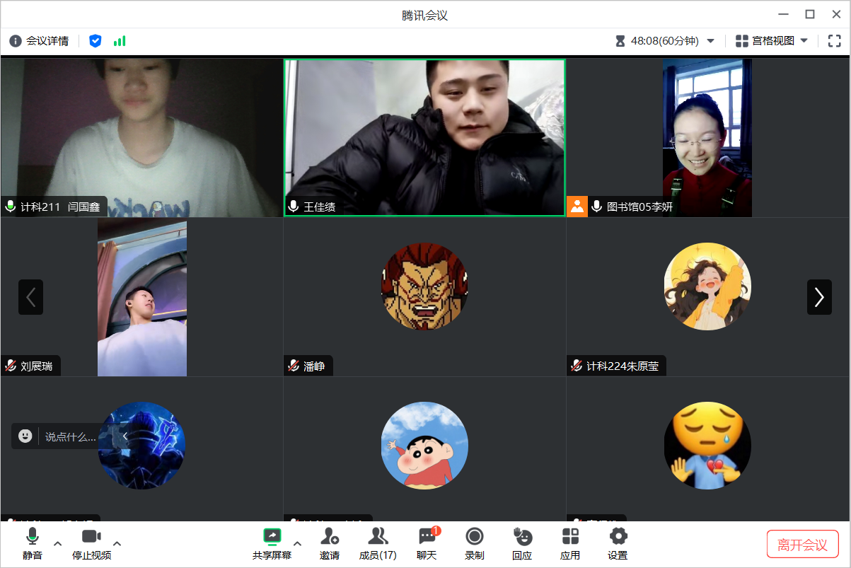 1月26日下午,生涯导师李妍在腾讯会议召开第三周的小组会议,由李妍老师主持,17人参加。