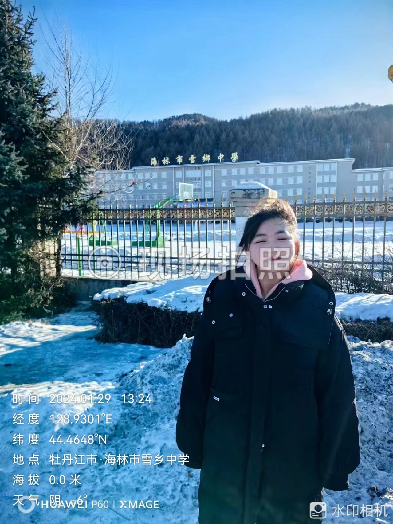 1月29日下午,计科233王舒畅回到看了母校“海林市雪乡中学”。