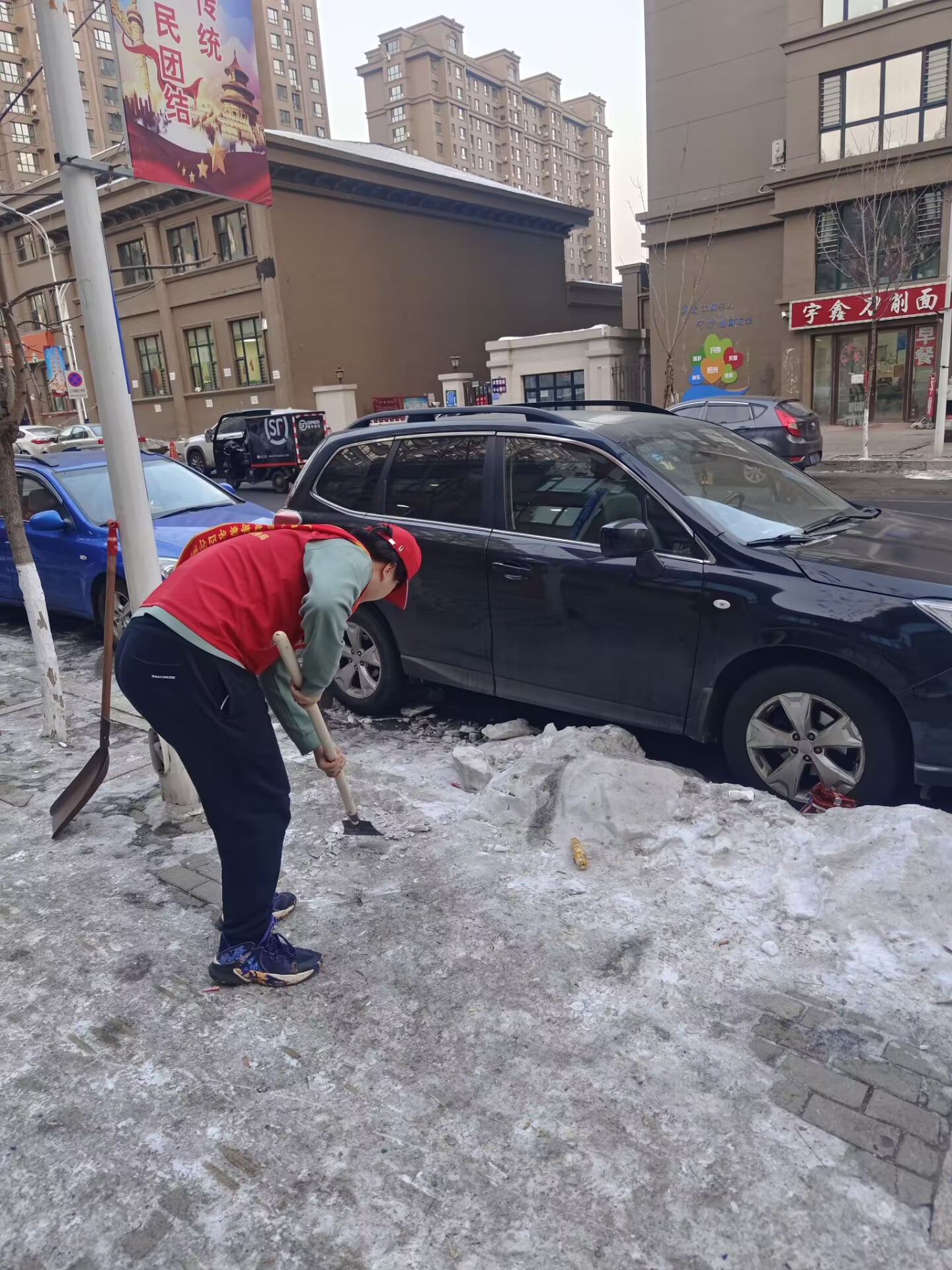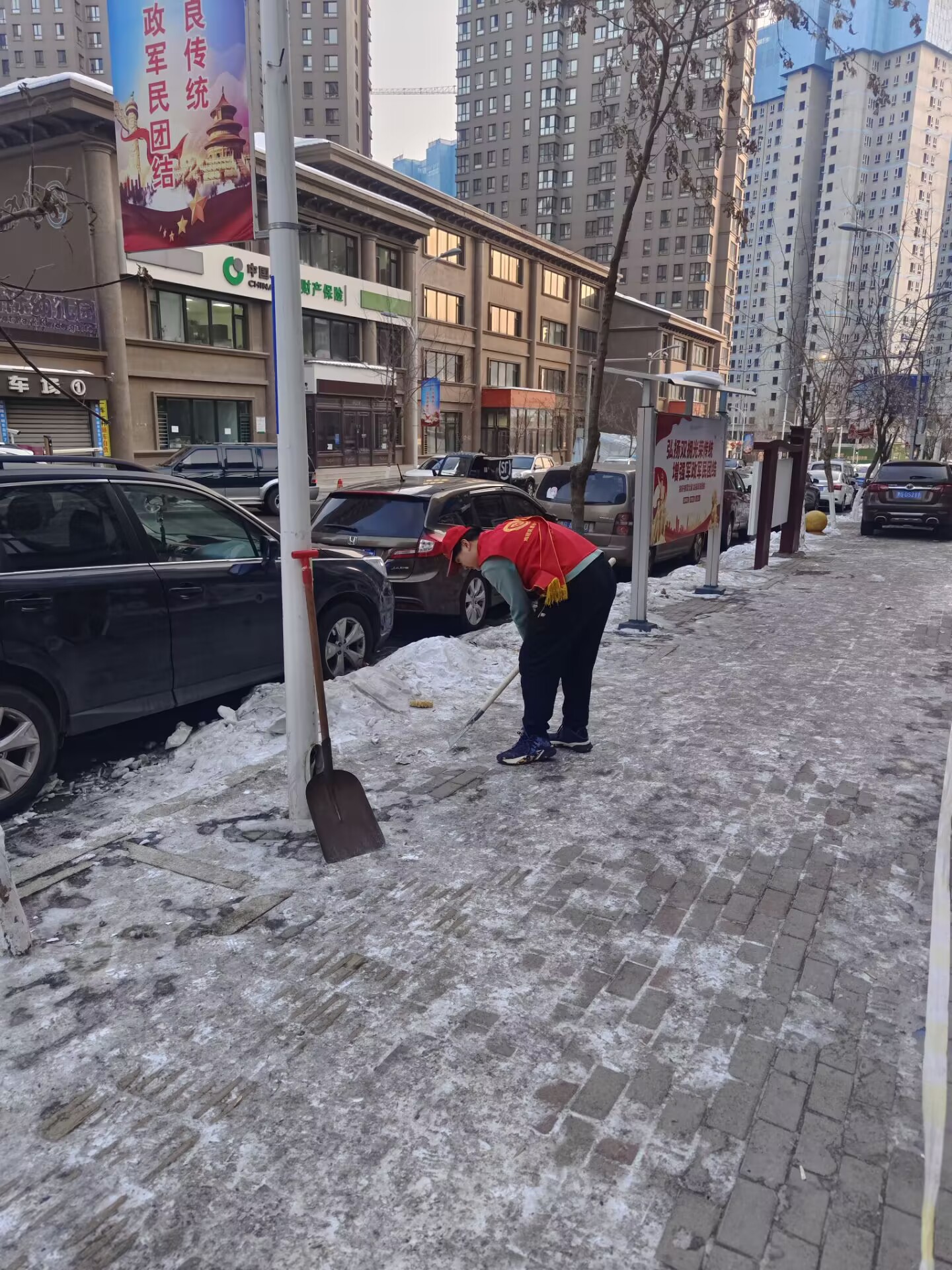 随着冬季的来临,城市的道路、街道和人行道上的结冰现象日益严重,给市民的出行安全带来了很大的困扰。为了解决这一问题,计科221赵鑫参加了蓝湖湾社区于1月18日组织的一场冰雪消除志愿服务活动。