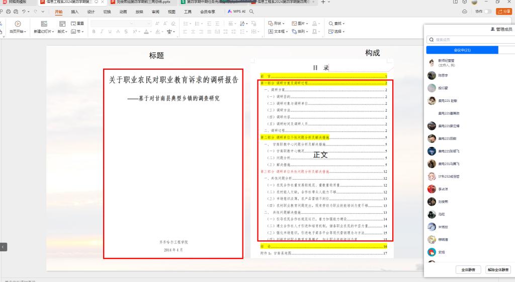 会上,纪莹莹老师首先对大家的中期任务完成情况做了点评,表示大家完成进程偏慢,并督促大家要加快进度,确保任务圆满完成;其次,因为大家的调研报告都还没有撰写,纪莹莹老师专门为大家讲解了撰写调研报告的相关内容;最后,督促大家任务完成后要在网站上及时发布报道,并确保报道发布的数量和质量,同时对学生提出的问题给予了解答。