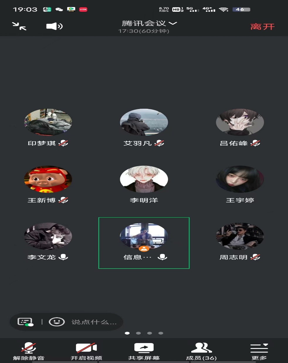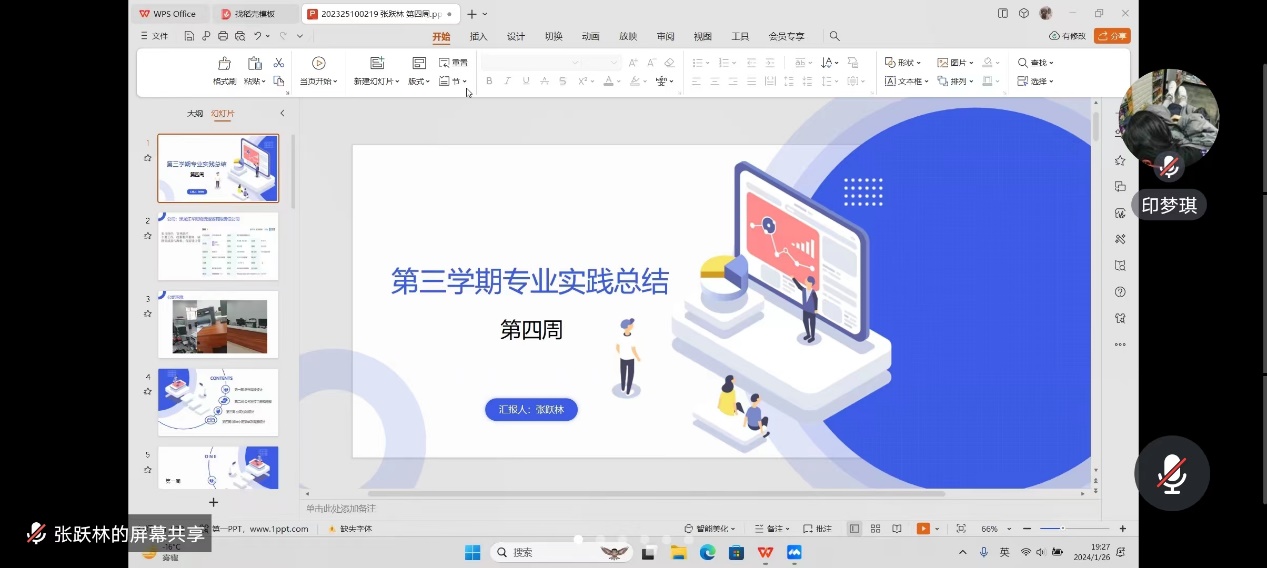 1月26日下午,王昀碧老师在腾讯视频会议召开专业实践学期第四周的工作汇报,视觉专升本232班36人参加。