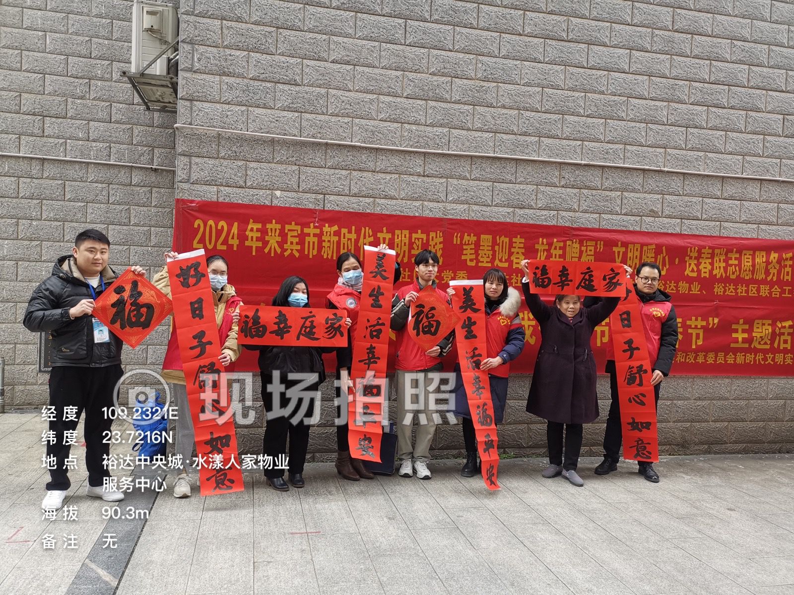 1月25日下午,计科231班卢星澎与来宾市兴宾区交通运输局志愿服务团队一同前往城北社区水漾人家小区开展新时代文明实践“我们的节日·春节”暨“文明暖心送春联”志愿服务活动。
