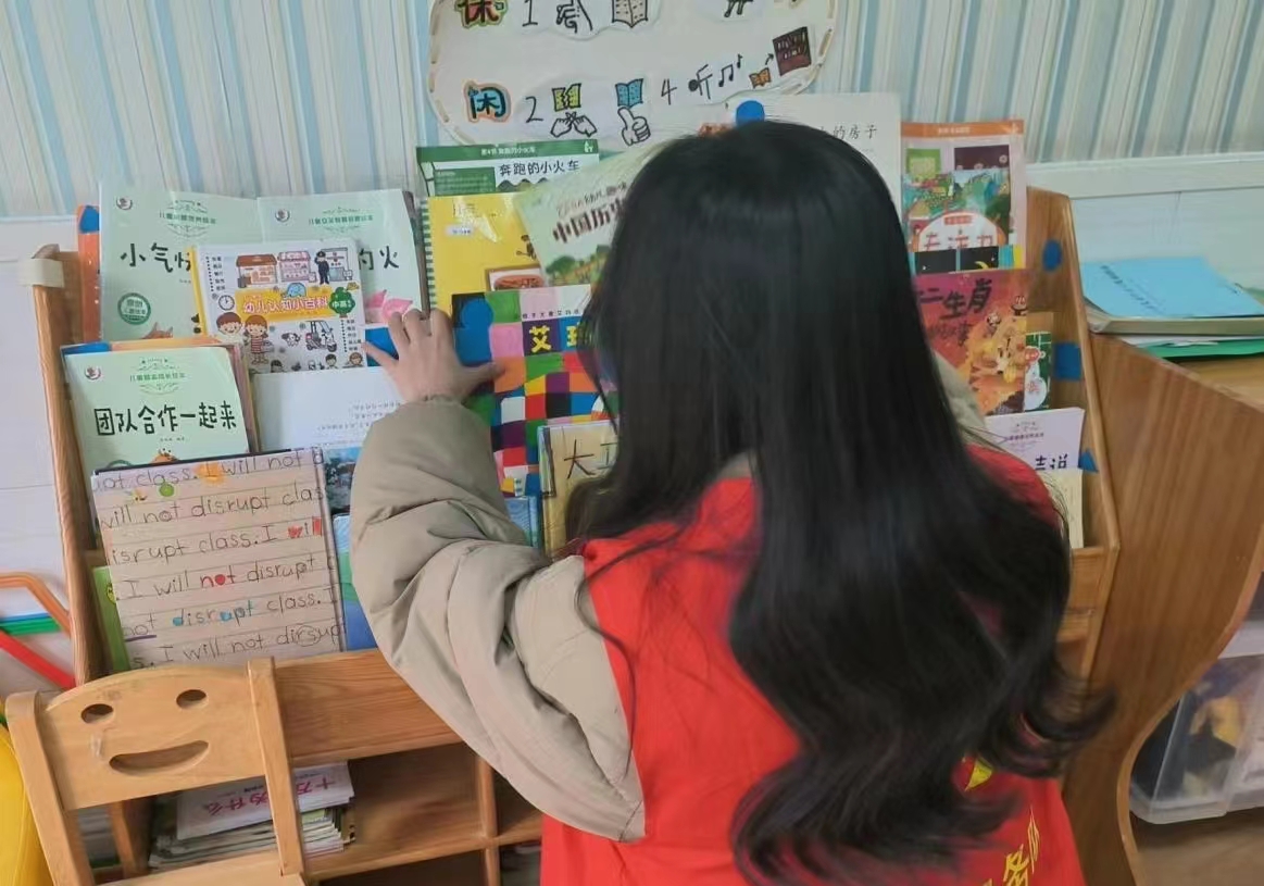 本次活动以献爱心为主题,首先,闫春梅同学前往了青年街社区的一所小学三年级班里。其次将回收而来的小学读物及儿童漫画书进行发放。最后和小朋友们进行互动,并友好的教导,小朋友们要好好听老师的话,努力学习。