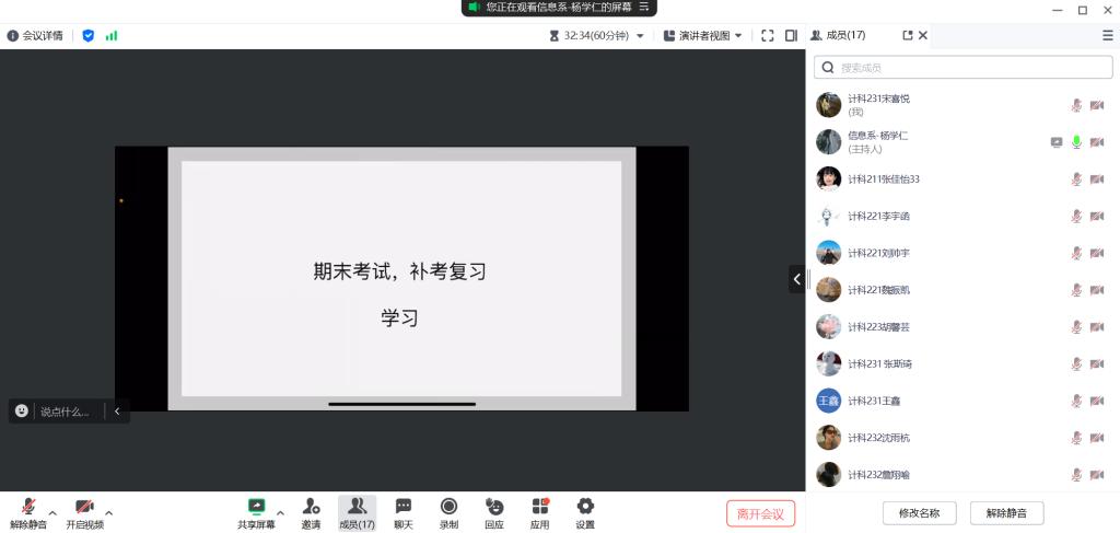 1月27日,生涯导师杨学仁在腾讯会议召开社会实践学期第三周总结会议,社会实践实践小组同学全员参与。