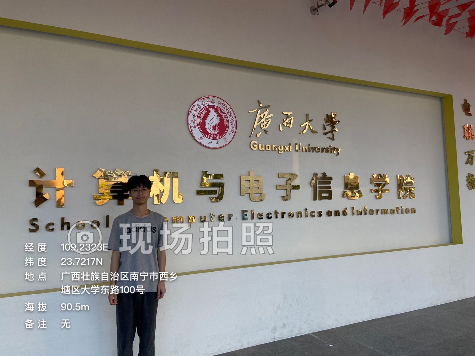 1月15日下午,计科231班卢星澎同学前往广西大学进行高校打卡,就读于广西大学的高中同桌荣吉带领参观。