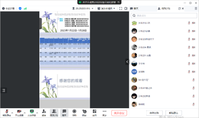 1月26日,指导教师刘茜蓓在腾讯会议召开第四学期第三周会议。会议由15名成员参与,会议对第四学期各任务进行了讨论与研究。