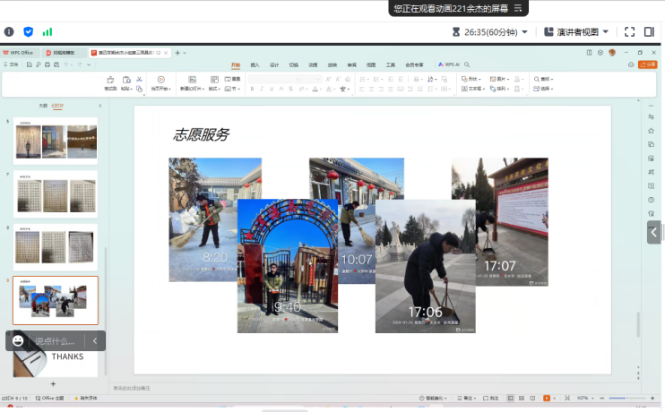 会议伊始,刘老师首先进行了参会人员的考勤,对未能按时参加会议的学生进行了批评。随后,刘老师在每组抽一名同学进行周总结汇报,仇道真同学在上周主要活动是参观了山东省莒州博物馆,感受当地的历史文化和艺术;李虹易同学参加消防志愿服务活动,对消防知识进行宣传;余杰、王博同学回访了母校,向学弟学妹们分享了他们的社会实践经验和大学生活感悟。在每个小组汇报完之后,刘老师对学生们的活动进行了点评和总结。她指出了同学们在社会实践中发挥的优势和不足之处,并提出了一些建议,希望同学们在接下来的实践中能够更加努力和积极参与。除了汇报和点评,会议还进行了一些其他的讨论。学生们针对社会实践中遇到的问题和困惑进行了交流,并向刘老师请教了一些相关的经验和建议。大家共同讨论了如何更好地应对社会实践中的挑战,并提出了一些解决问题的办法。最后,刘老师对学生们的努力和参与表示了肯定和鼓励,并希望大家能够在接下来的社会实践中再接再厉,取得更好的成果。
