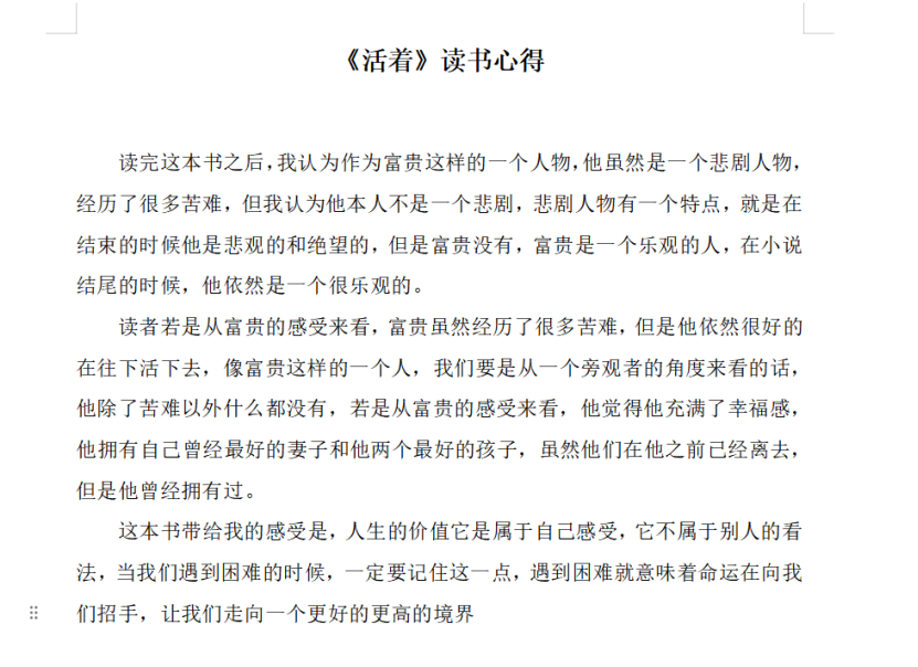在品读完一本名著后,产生共鸣的,我们往往会写下自己的感受,也就是读书心得,王星宇同学的读书心得虽然简短,但却很精悍,总而言之,就是不要感谢苦难,要感谢克服苦难的自己。