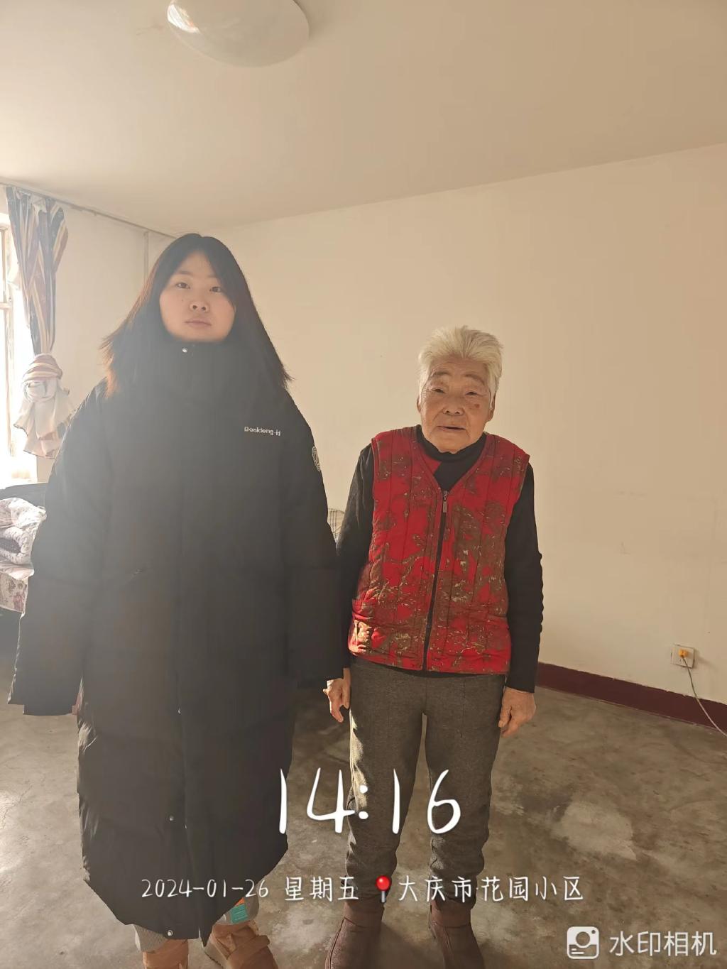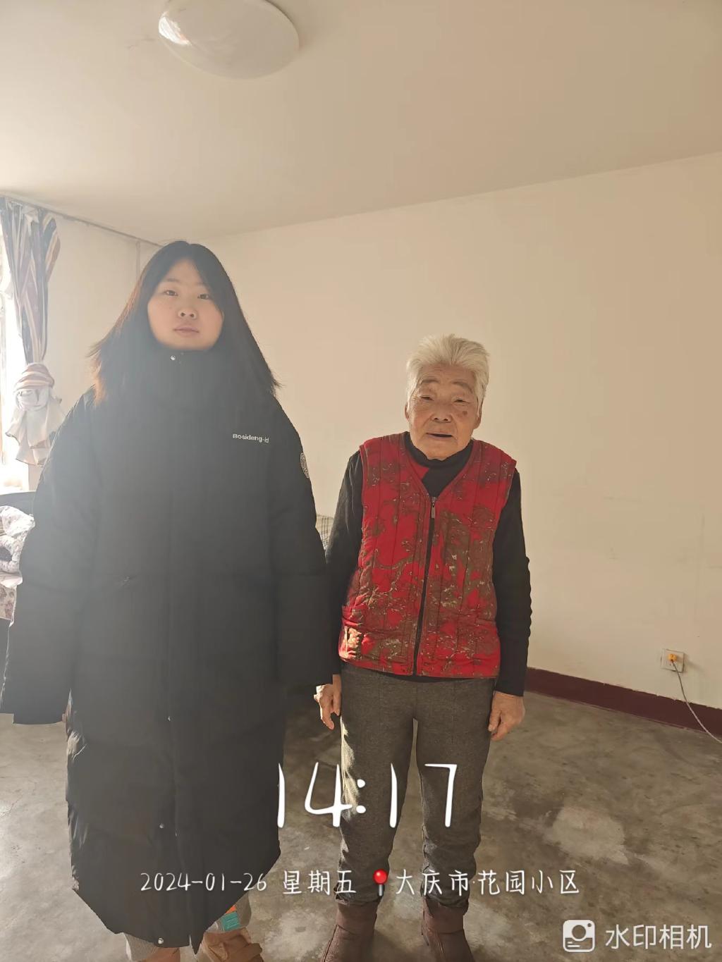 1月26日下午,大数据231班刘思慧在大庆市花园小区开展共青团“青春暖流·青联委员送温暖”活动。