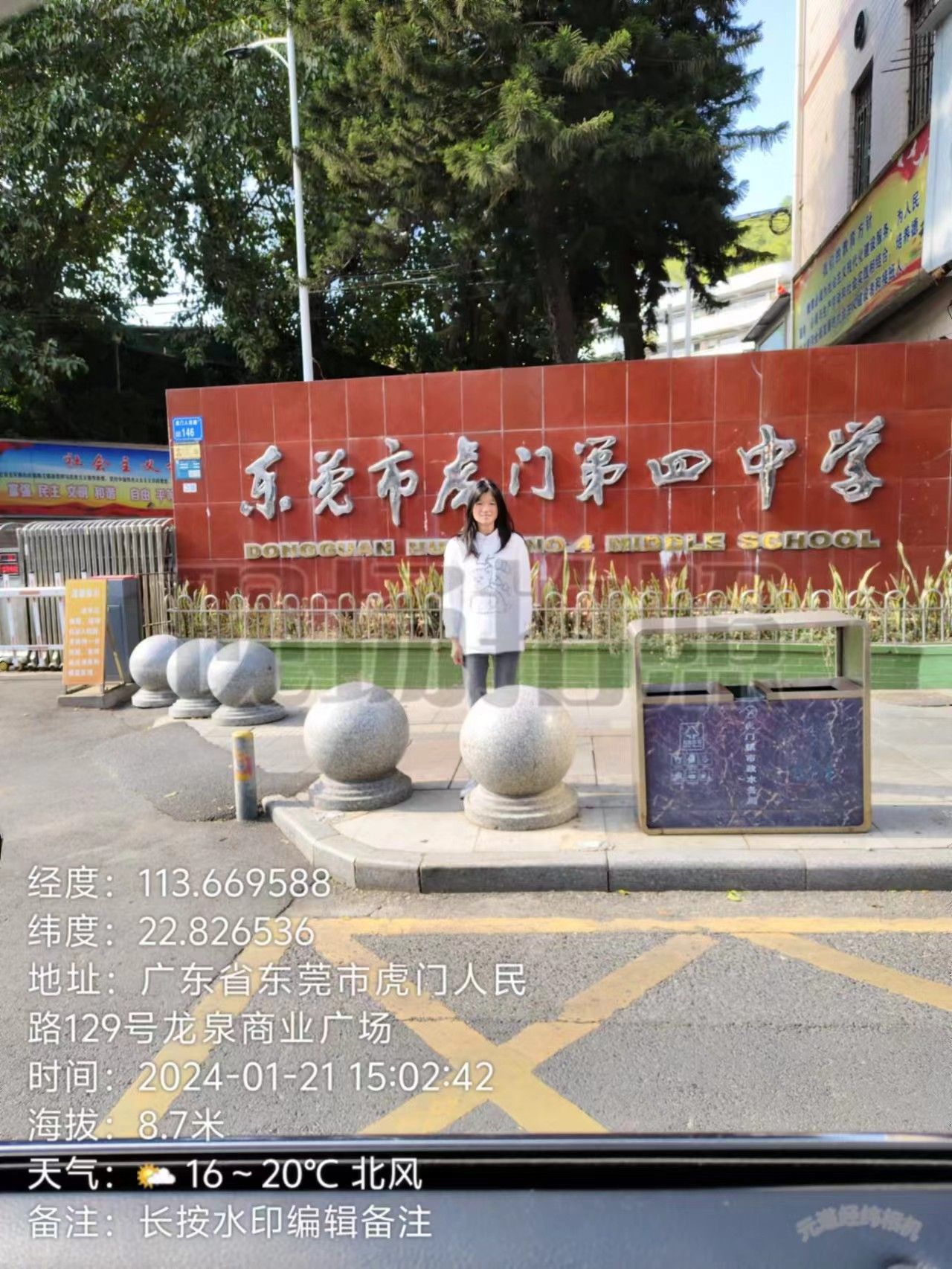 1月21日下午,电科232班翟文婷同学前往东莞市虎门第四中学进行打卡。