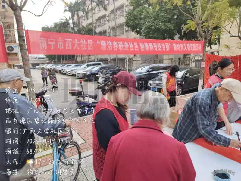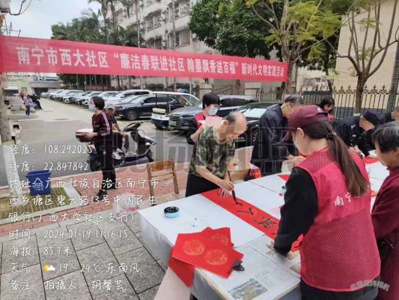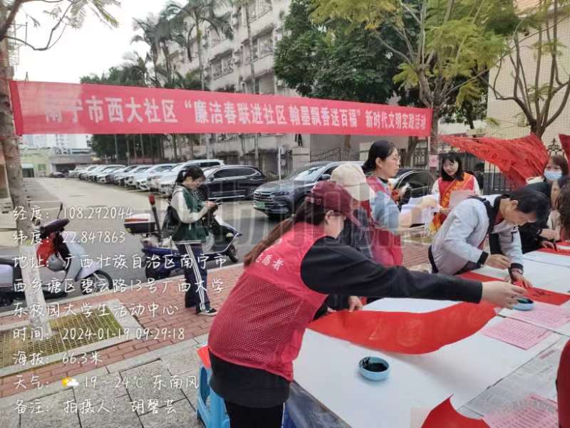 1月19日,SHSJ221小组计科223胡馨芸参加了南宁市西乡塘区组织开展的志愿服务活动,此次活动共有9名志愿者参与,由西乡塘街道办事处西大社区居民委员会主办。传递爱心,为社区老人新年生活增添一份色彩。通过参与志愿服务活动,培养个人沟通能力,组织能力,协作能力等各方面技能,促进个人德智体美劳全面发展。