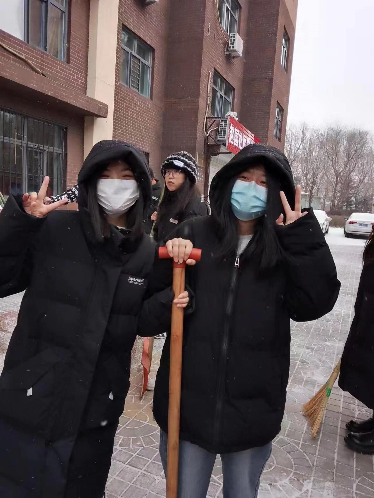 为关怀社区老人的家居生活,清理积雪,1月24日,我校大数据专业23级学生杜月娇前往社区参加志愿活动。