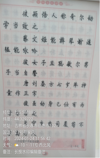 1月22日-1月28日,SHSJ126苑飞洋小组进行每日钢楷临摹。