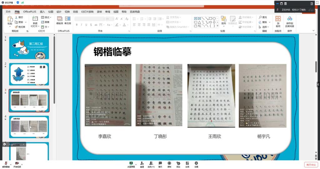 首先,在第一周组内各小组组长汇报了组内社会实践学期整体计划情况和第一周实践情况后,本周开展第二周线上的实践检查。组内成员16人全员到齐,其中同学们向张晶老师汇报了关于第二周实践任务进度、需完成的具体事项和情况总结,报道了周周落实整体计划的实践指标。而后张晶老师向各位同学做出了新年社会实践学期的意见和安全教育工作,望各位同学在新年高峰时间可以继续保持进度完成工作,并且按质保持工作情况,注意外出安全。