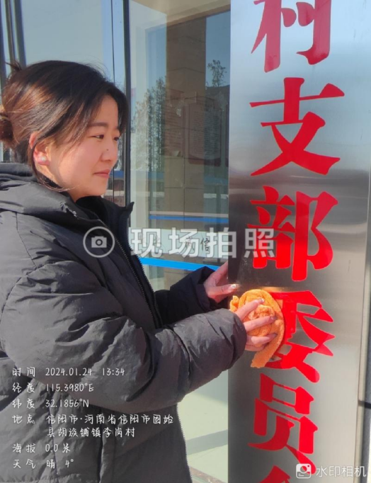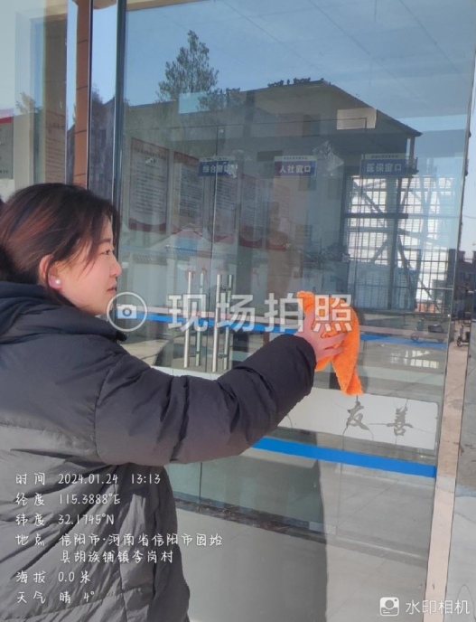 1月24日,SHSJ14视觉221班马海岚在河南省信阳市固始县胡族铺镇李岗村村委会进行社会实践学期第一次志愿服务活动。