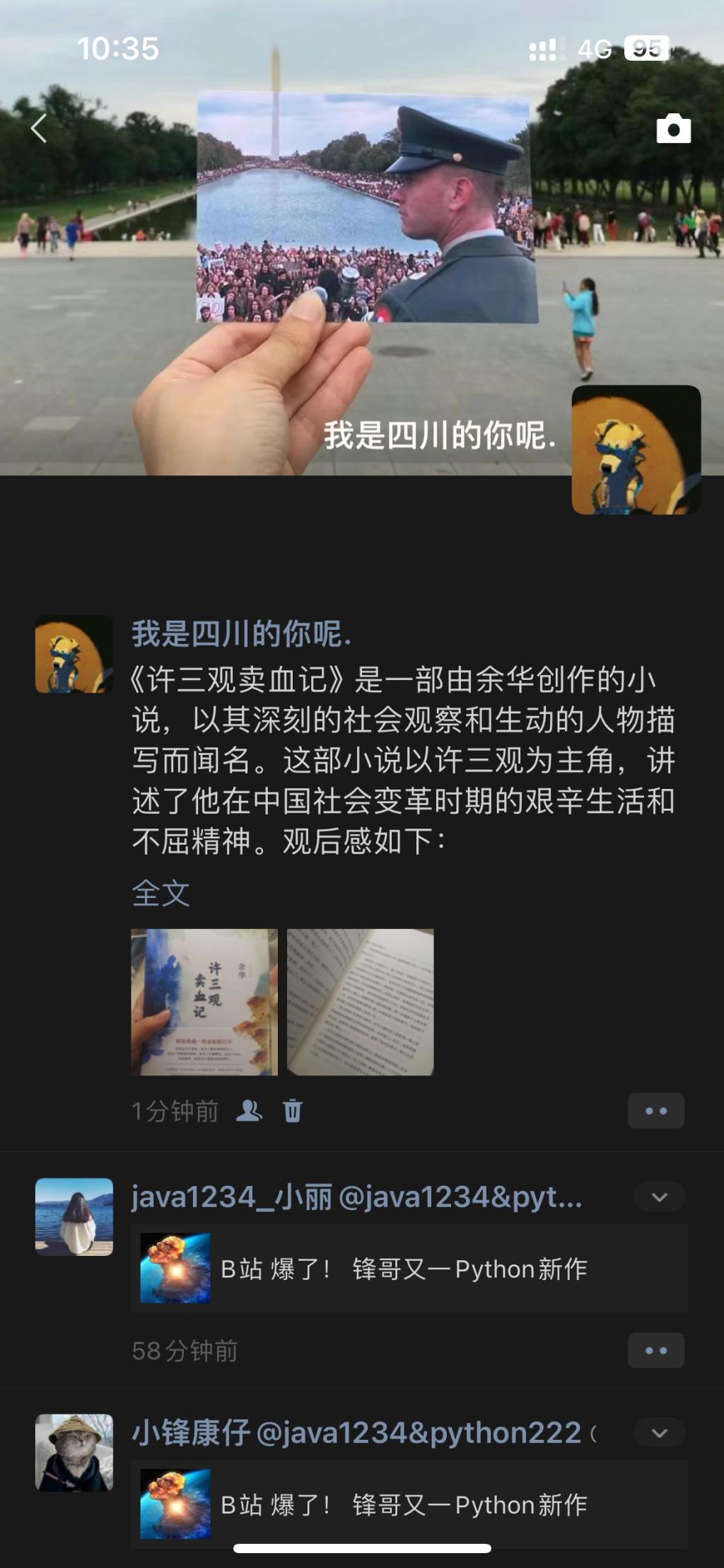 然后,SHSJ112小组组长计科221黎建均分享了他阅读的书籍,《许三观卖血记》是一部由余华创作的小说,以其深刻的社会观察和生动的人物描写而闻名。小说深刻地揭示了社会问题,同时通过主人公的努力和乐观,传递出对生活的热爱和对未来的希望。这是一部值得深思的作品,对于理解中国社会变革时期的人性困境具有重要意义。