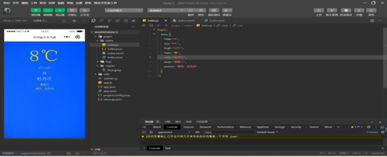 在第三周的专业实践中,他在企业老师李念霞的指导下完成了一个小程序,是一个播报天气的小程序,可以相应的显示出温度、时间、星期、天气等等。它的背景版是可以改动重新设置,也可以设置一个关于今天天气的一个颜色,这样更吸引使用者的眼球,这个是重要的一点。