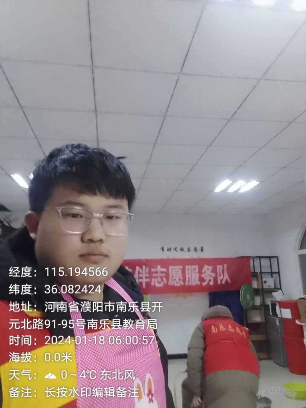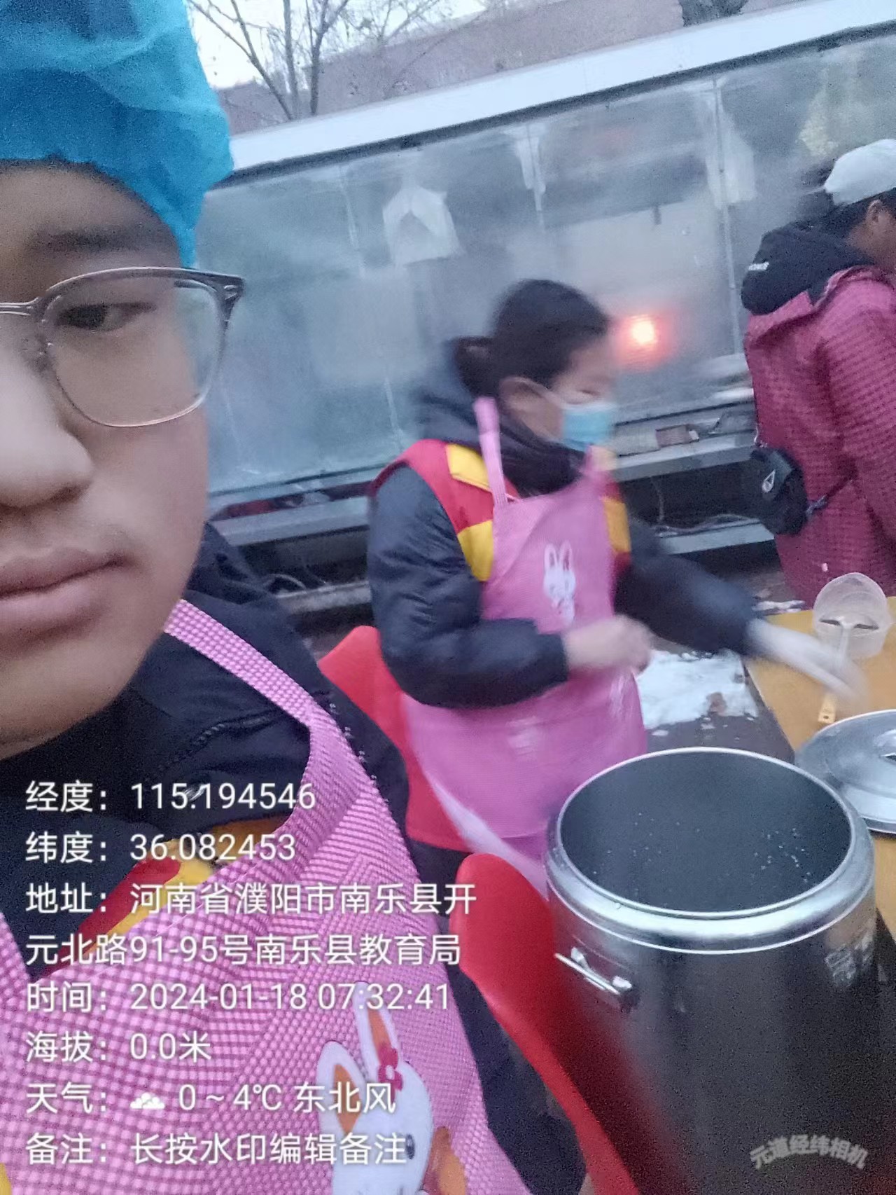 1月18日—1月20日,大数据211班孟瑞同学,在河南省驻马店市正阳县慎西路进行了关于清扫路段周边卫生的志愿活动。大数据221班睢晨曦同学,在河南省濮阳市南乐县北环志愿服务中心进行了腊八节为环卫工人奉粥的志愿活动。