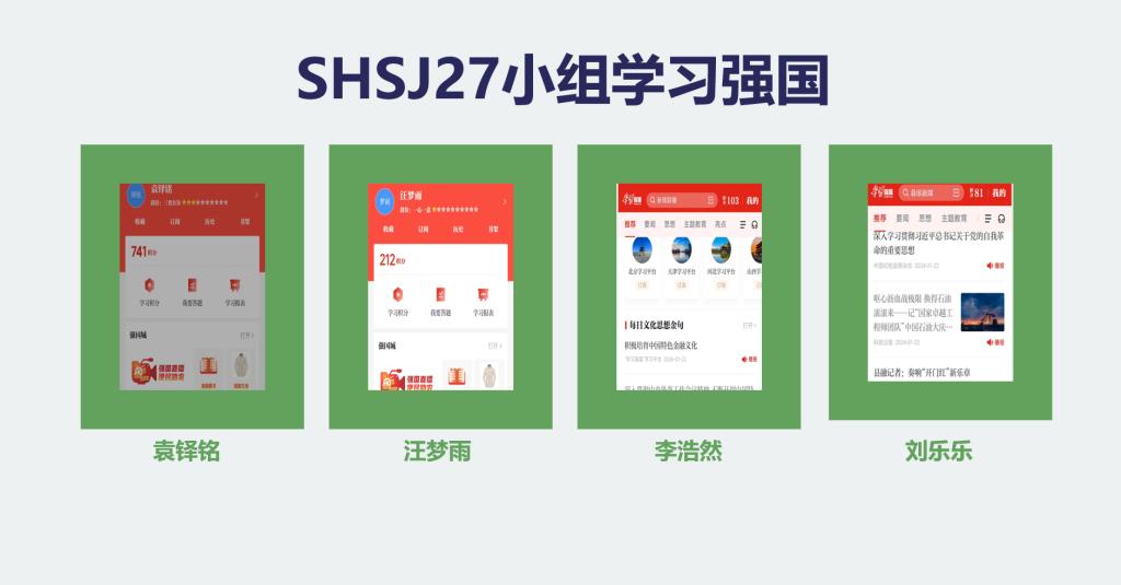 1月15日-1月21日,刘乐乐小组第二周完成了字帖临摹,学习强国积分进度学习。