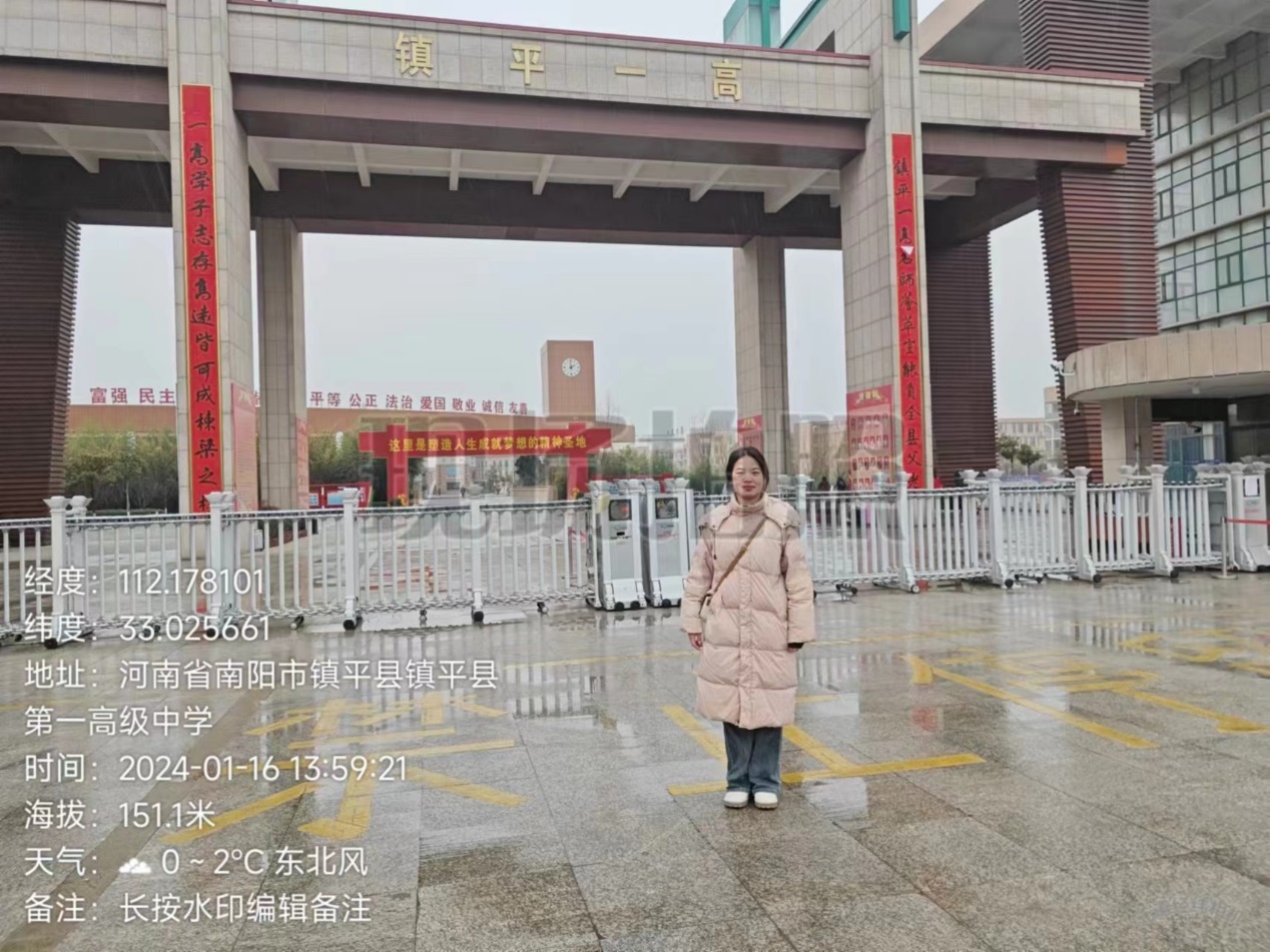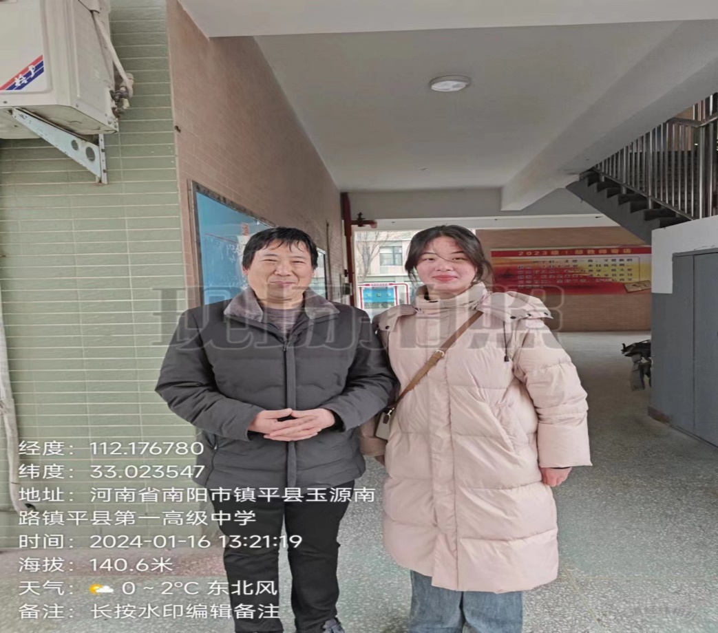 1月16日下午,我校大数据专业23级学生海晶前往镇平县第一高级中学进行回访母校,与曾经任课教师及班主任回访交流。